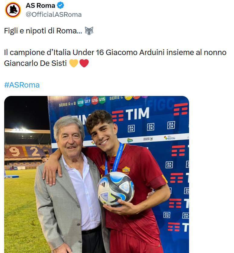 Due anni fa i due sono stati immortalati a margine della premiazione dello Scudetto Under 16 vinto dalla formazione giallorossa.