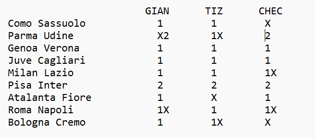Arriva la 13° giornata di Serie A e come sempre, di venerdì, alla vigilia di un nuovo turno di campionato i pronostici di Gianluca Piacentini, Checco Oddo Casano e Tiziano Moroni.