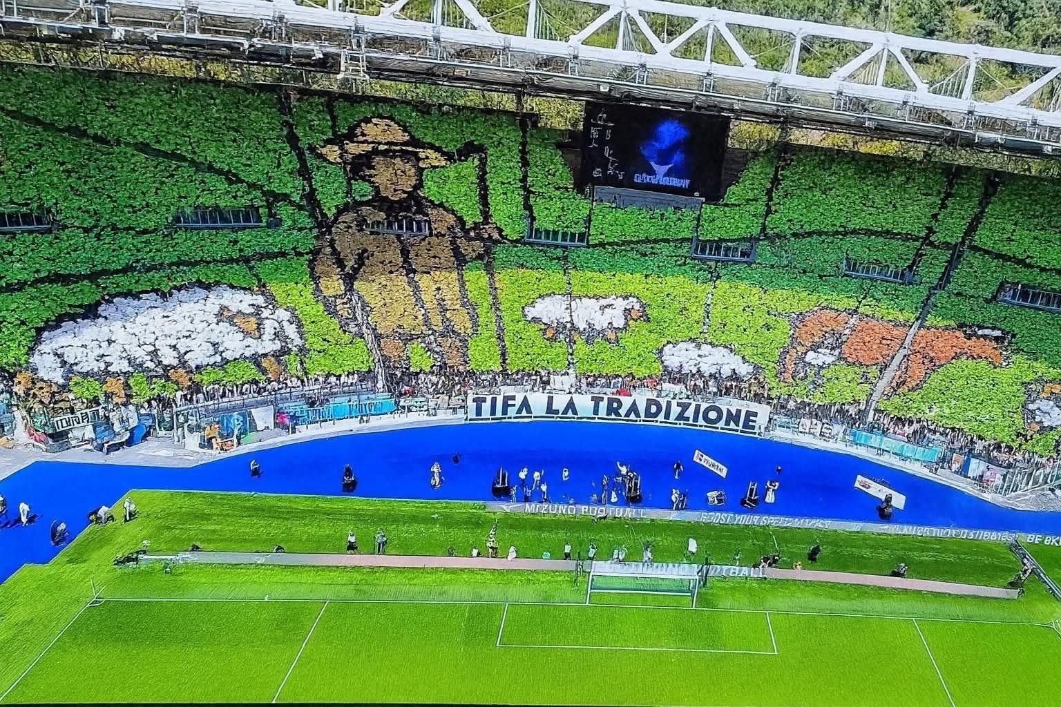 Discussione social accesa anche sulle coreografie: in molti hanno ravvisato nel giovane laziale scelto dalla Nord come stendardo centrale ‘Tin Tin’, oppure il rifacimento dell’intera scenografia con il consueto riferimento alla tradizione pastorizia.